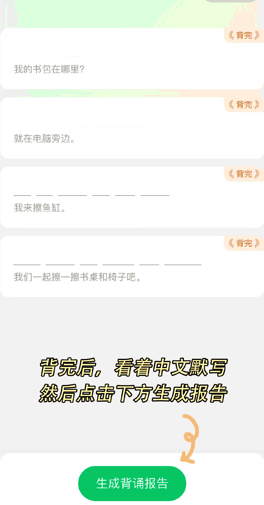 結(jié)束后再點(diǎn)擊生成背誦報(bào)告