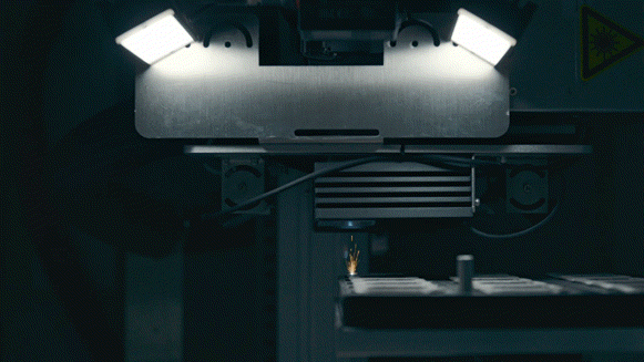 每臺打印機(jī)配備了一個振鏡系統(tǒng),包含 6 束激光,每束光如同一支細(xì)筆,通過振鏡系統(tǒng)引導(dǎo),在粉末表面融化出一層零件的橫截面。